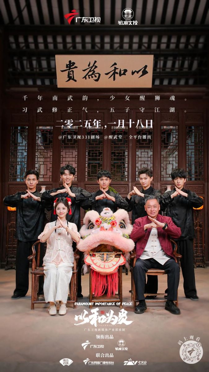 《以和为贵》的背景设定在繁华与古韵交织的现代都市佛山,那里隐藏着一所历史悠久的武馆——醒武堂,它曾是佛山武术的辉煌象征。但随着时代的变迁,武术逐渐淡出人们的视野,武馆也面临着前所未有的危机。在紧要关头,武馆一只粉色狮头内藏着的神秘小师妹出现了,她誓要重振佛山武术荣光。在小师妹苏醒醒的引领下,五个性格迥异的武馆弟子,开始了一场铁拳、柔情、智谋交织的江湖冒险。