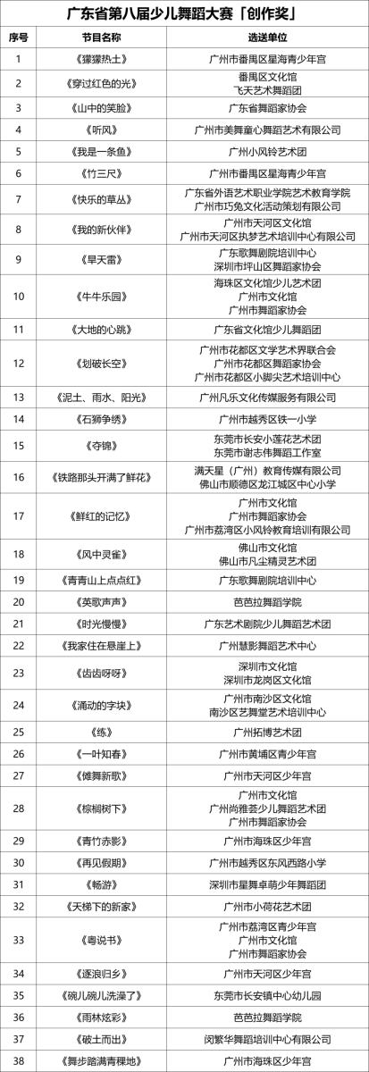 广东省第八届少儿舞蹈大赛【获奖名单】