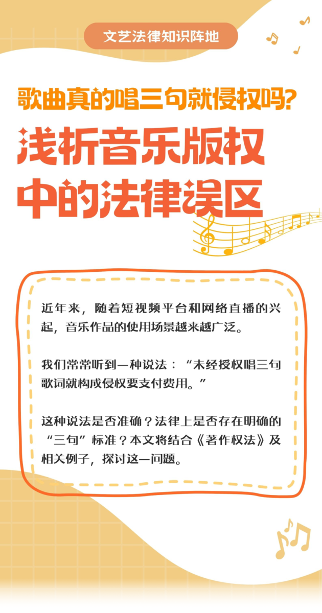 “唱三句就侵权”是一个过于简化的误解。音乐版权的核心在于保护创作者的智力成果,而非机械计算歌词或音符的数量。无论是个人还是商业主体,使用他人作品前应树立版权意识,通过合法途径获取授权,或在合理使用范围内谨慎行事。在法律框架下尊重原创,才能促进文化产业的良性发展。