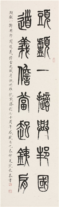 头颅一掷兴邦国,道义担当起铁肩。 施世雄 联(篆书) 沈永泰(广东省书协主席团成员)