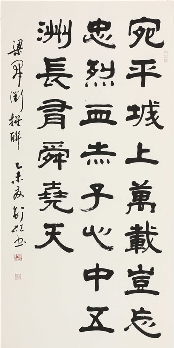宛平城上万载岂忘忠烈血;赤子心中五洲长有舜尧天。 梁开衢 联(隶书) 陈钦硕(广东省书协副主席 深圳市书协主席)