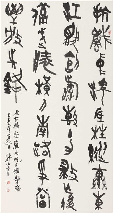 抗战中流砥柱,纵辔东江,独创游击主力;救亡后备武装,横刀南路,争当解放先锋。 余仁杨 联(篆书) 王志敏(广东省书协主席团成员)