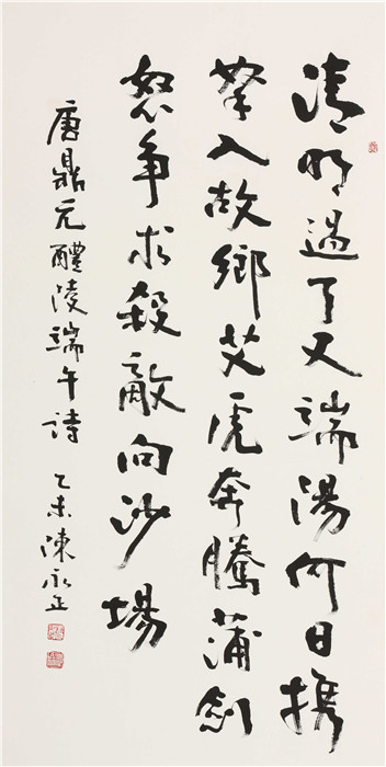 清明过了又端阳,何日携孥入故乡。艾虎奔腾蒲剑怒,争求杀敌向沙场。 唐鼎元 诗(行书) 陈永正(中国书协顾问)