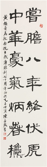 尝胆八年终伏虎,中华豪气炳春秋。 黄超奇 诗(隶书) 陈春盛(广东省书协副主席)
