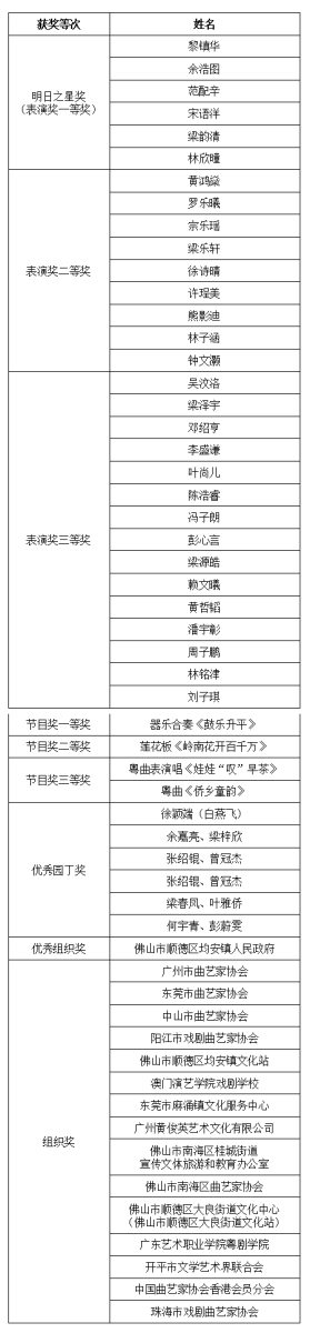 本届选拔赛自2025年7月启动,吸引了来自全省及港澳地区推荐报送节目214个、合共439名青少年曲艺表演者踊跃报名。经过层层选拔,优选出30个节目进入粤语曲种专场决赛,其中包括26个表演类节目(30名选手)和4个节目类作品。经过决赛环节激烈角逐,6名小选手凭借亮眼表现脱颖而出,荣获一等奖,获得“明日之星”称号。
