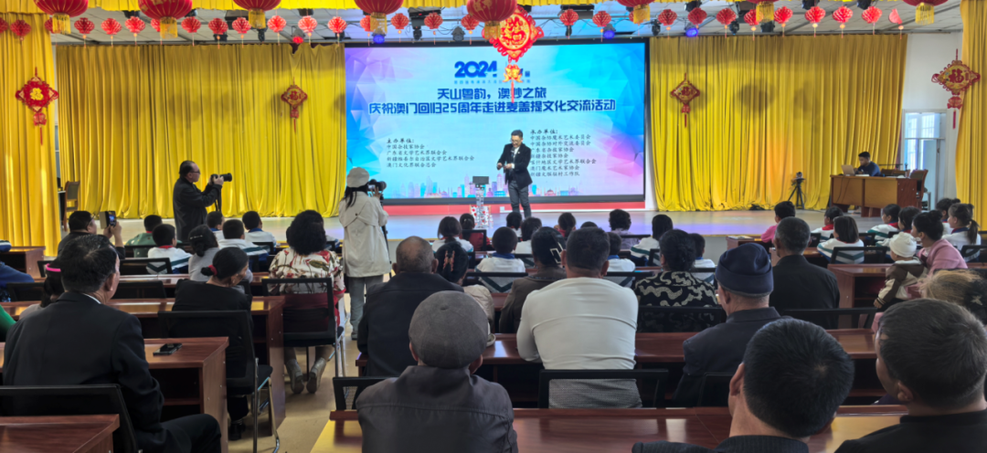 中国杂技家协会、广东省文联、新疆文联以及澳门文化界联合总会在新疆喀什联合主办“天山粤韵·澳妙之旅”文化交流活动在喀什大学开幕展赴疏勒县英阿瓦提乡滚独鲁库木村、麦盖提县巴扎结米镇恰木古鲁克村开展民演出