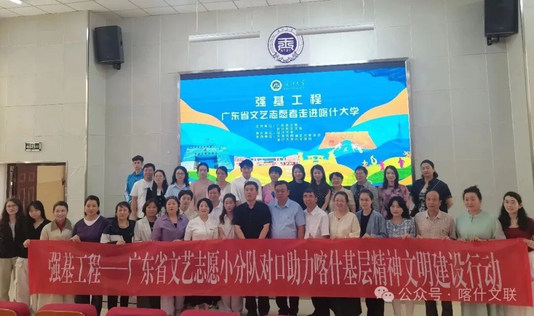 广东省文联、喀什地区文联主办,喀什市文联承办的“强基工程”——广东省文联文艺志愿服务小分队助力喀什基层精神文明建设行动分别在喀什大学人文学院与喀什市实验学校开展;东莞市朗诵艺术家协会与喀什地区文联朗诵艺术家协会签署《结对共建协议》