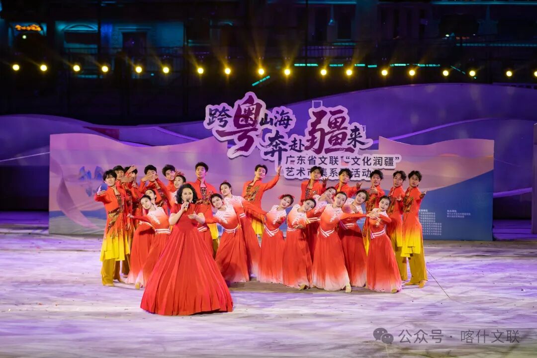 广东省对口支援新疆工作前方指挥部、广东省文联、新疆文联、喀什地区文联主办,广东省文艺志愿者协会、喀什地区歌舞剧团承办的“跨粤山海 奔赴疆来”庆祝中华人民共和国成立75周年暨广东省文联“文化润疆”文艺志愿者走进喀什惠民演出活动先后在疏附县和伽师县举行,为当地各族群众献上了一场精彩绝伦的视听盛宴4000余名各族群众在现场观看了演出,同时通过网络直播在线观看的群众达万余人次