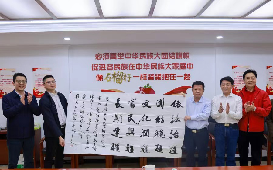 广东省文联一行赴广东省对口支援新疆工作前方指挥部进行座谈交流并赠送书法作品
