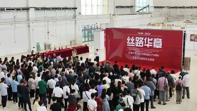 喀什地区“丝路华章——庆祝中华人民共和国成立75周年” 美术书法摄影民艺联展。展览首次特邀广东省文联著名书画家创作的8幅精品,为本次展览增添了华彩