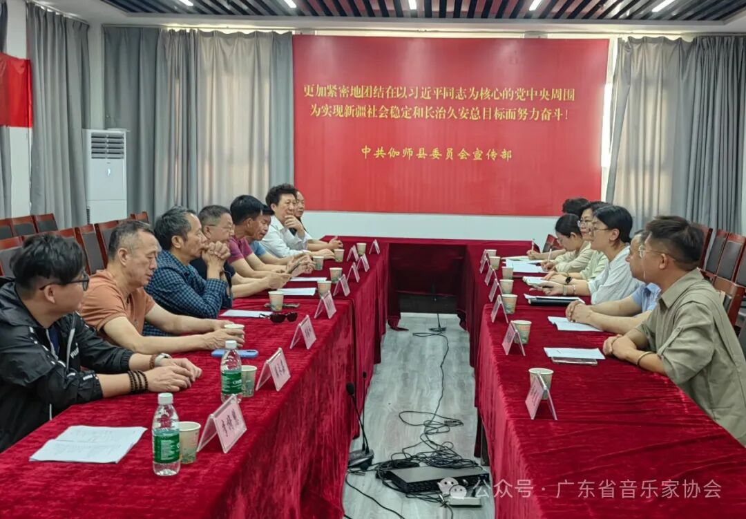 广东省文联音乐舞蹈工作部主任、一级调研员,省音协主席、一级作曲金旭庚率著名词作家杨湘粤,一级作家赖房千,一级导演、作曲家、珠海市音协主席李需民,一级作曲、东莞市音协主席崔臻和,一级作曲桑雨,青年曲作家薛永嘉,青年词作家叶方义等词曲创作老师赴伽师县歌舞剧团、伽师县第二小学、伽师县胡杨生态园等地,开展采风和座谈交流