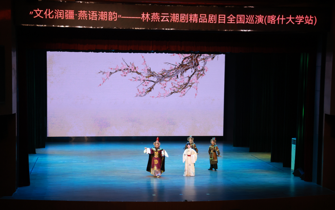 广东省对口支援新疆工作前方指挥部、广东省文化和旅游厅、中共喀什地委宣传部主办,中共汕头市委宣传部、汕头市文化广电旅游体育局、汕头市文化发展中心、广东潮剧院承办,由广东潮剧院一团演出的“文化润疆·燕语潮韵”——林燕云潮剧精品剧目全国巡演(新疆站)在喀什大学成功举行。