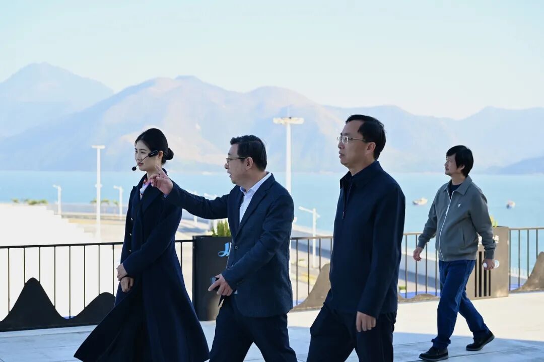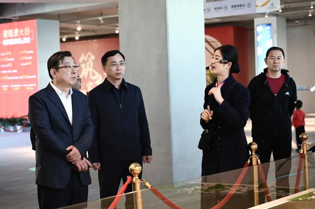 调研组经港珠澳大桥登陆蓝海豚岛,实地参观大桥建设成就展,详细了解大桥建设历程、时代价值和现实意义,并听取珠海市文联关于大桥故事片创作推进情况的综合汇报。