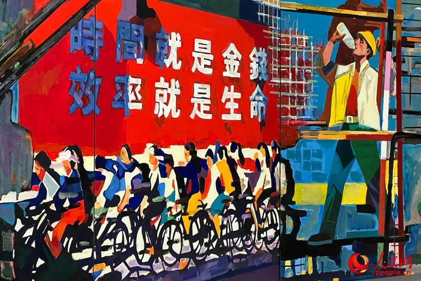 特区精神如脉搏般在长卷深处有力跳动,“拓荒牛”不只是雕塑,而是千千万万劳动者的群像;“闯”不只是动作,而是敢于冲破束缚,积极改革创新的勇气和信心;“时间就是金钱”不只是标语,而是分秒必争的奋斗精神;“空谈误国、实干兴邦”,既是整个城市的气质,也是每名奋斗者的日常。长卷通过巧妙构图,区分主次、虚实的手法,不仅使画面和谐统一,还突出“标志性”景观,将抽象精神转化为可感可视的图像语言,实现了特区精神的艺术升华。