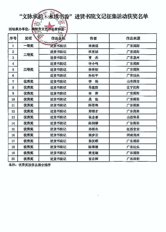 1“文脉承韵·永续书香”进贤书院文记征集活动获奖名单