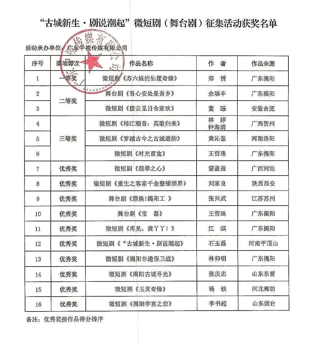 6“古城新生·剧说潮起”微短剧(舞台剧)剧本征集活动获奖名单