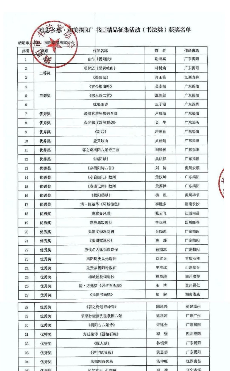 3“难忘乡愁·和美揭阳”书画精品征集活动获奖名单