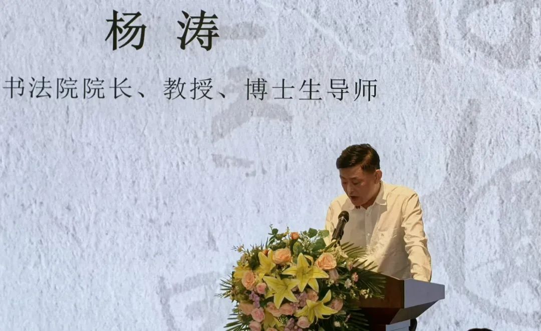 中国艺术研究院院长周庆富在致辞中谈到,作为国家级综合性学术机构,中国艺术研究院汇集了当代各艺术门类中一大批最具代表性的专家学者和艺术家,在当代艺术创作领域发挥了重要的导向性、示范性作用。他从学术角度肯定了本次展览价值:这是代表性书家群体创作观、史学观、艺术观的多维度展示,也是书法艺术从书斋走向大众、从传统走向当代的重要实践。同时指出,一切艺术的大发展、大繁荣既要遵循艺术规律,也需要开放包容的学术理念与宏阔渊深的文化观念、文化格局。最后希望书法院在杨涛院长的带领下,与各位书界同道一起,凝心聚力,继续肩负起推进书法事业的文化使命,赓续中华文脉,不断创作出更多具有时代风骨的优秀作品,为中华民族伟大复兴贡献文化力量。