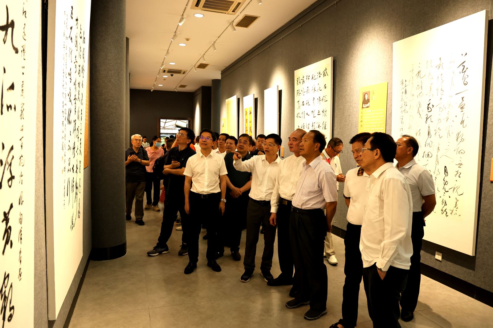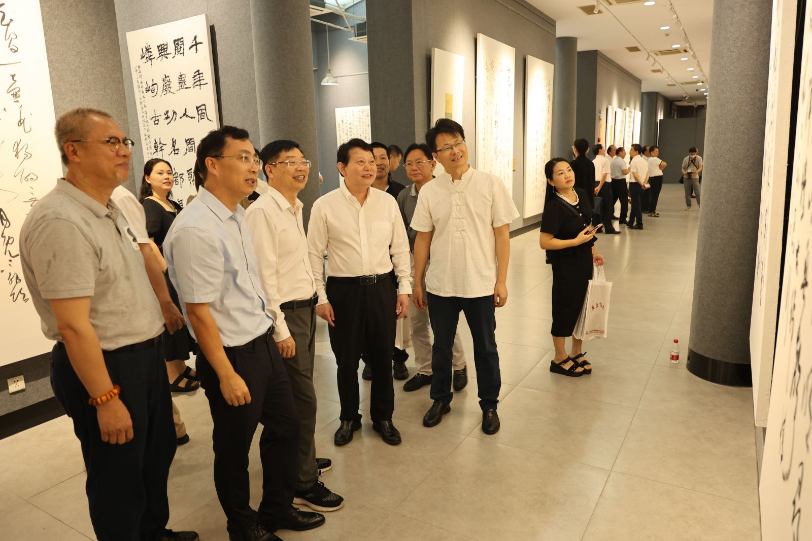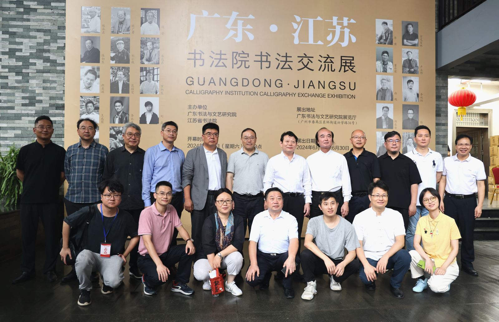 6月1日下午15:00,由广东书法与文艺研究院、江苏省书法院联合举办的广东·江苏书法院书法交流展在广东书法与文艺研究院举行。国家行政学院原副院长、中华诗词学会会长周文彰,广东省政协副主席黄武,广东省人大常委会原副主任、省总工会原主席邓维龙,广东省人大教科文卫委主任委员、原广东书法院院长刘小毅,广东省文联党组书记、专职副主席王垂林,江苏省文化和旅游厅一级巡视员朱斌,广东财经大学党委书记郑贤操,广东省文联原一级巡视员周华,广东省总工会原常务副主席陈宗文,广东省文联党组成员、专职副主席高景海,广东省文联党组成员、副主席郝勇,中国书法家协会理事、山西省书法家协会主席、中华诗词学会书画界委员会副主任石跃峰,中国书法家协会理事、重庆市书法家协会主席漆钢,广东省文化和旅游厅二级巡视员唐国华,中华诗词学会副会长周达,广东文艺职业学院党委书记李文升,著名书法家、中国书法家协会原理事、广东省书法家协会顾问欧广勇,著名书法家、中国书法家协会教育委员会原副主任、广东省书法家协会顾问陈初生,中国书法家协会会员、著名书法家戴焕,中国书法家协会会员、著名书法家徐斌,暨南大学校董、华南农业大学客座教授梁仲景,广东省文史馆党组成员黎泽林,江苏省文化和文旅厅艺术处二级调研员傅广军,中国书法家协会理事、广东省书法家协会副主席兼秘书长颜奕端,中国书法家协会理事、江苏省书法家协会副主席、江苏省书法院院长李啸,中国书法家协会理事、广东省书法家协会副主席、广东书法与文艺研究院院长李远东,中国书法家协会理事、江苏省书法家协会副主席、南京市书法家协会主席、中华诗词学会书画界委员会执行主任谢少承,中华诗词学会书画界委员会副主任、北京诗词艺术中心主任纪永刚,中华诗词学会诗教部主任、北京市机关书法家协会副主席李建春,广东省文联副秘书长、创作研究室主任梁少锋,广东省文联办公室主任王民旻,广州市番禺区人大副主任陈松辉,广东文艺职业学院副院长张丹丹,广州市番禺区文联主席黎雪梨,广州市番禺区文化广播体育旅游局党组书记、局长莫智聪,广州市番禺区东环街党工委书记何柳青,广州美术学院美术教育学院院长、教授、博士生导师吴慧平,广东省文联机关党委(人事部)副主任刘志刚,江苏省书法院副院长、中国书法家协会会员董水荣,广东书法与文艺研究院副院长卢瑜,广东书法与文艺研究院副院长范桂觉等出席开幕式。