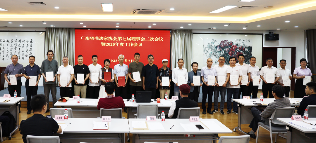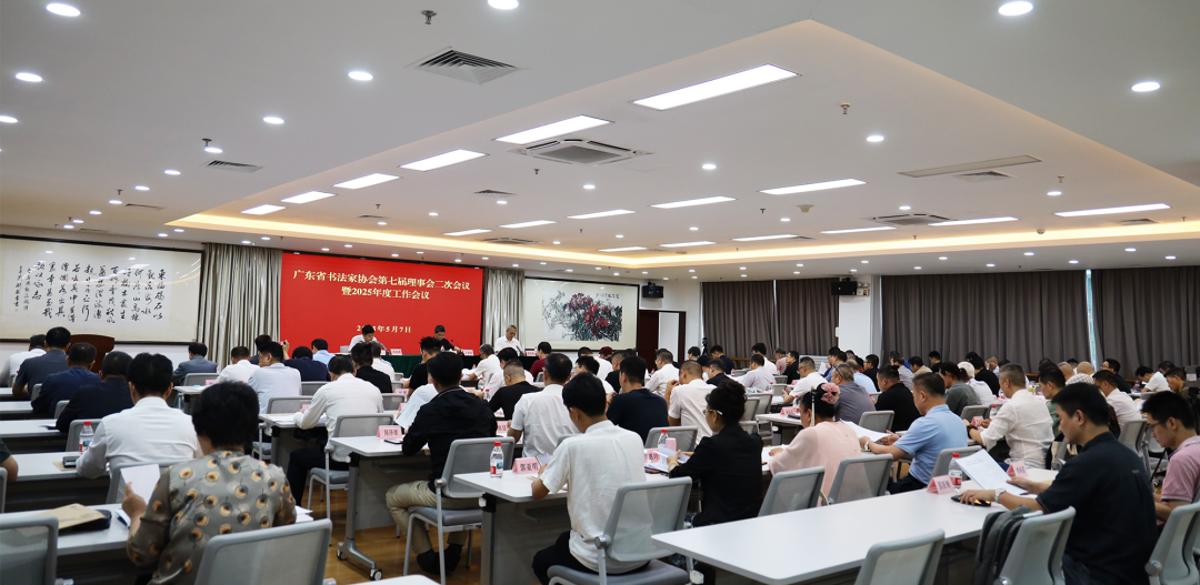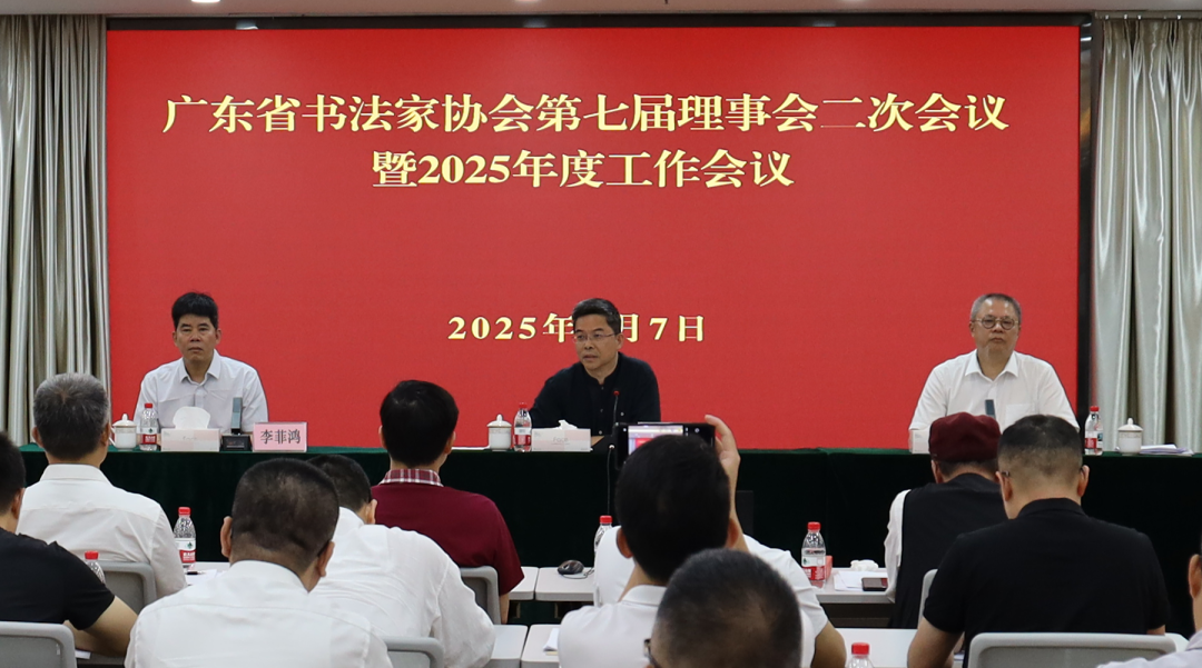 5月7日,广东省书法家协会第七届理事会第二次会议暨2025年度工作会议在省文联三楼会议室召开。省文联党组书记、专职副主席王垂林出席会议并讲话。省书协专职副主席颜奕端,秘书长李菲鸿等理事、监事及相关工作人员百余人参加了会议。会议由颜奕端主持。