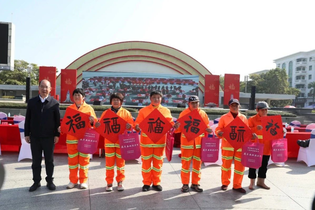 活动向环卫工人代表、警察代表、教师代表、企业员工代表赠送春联。