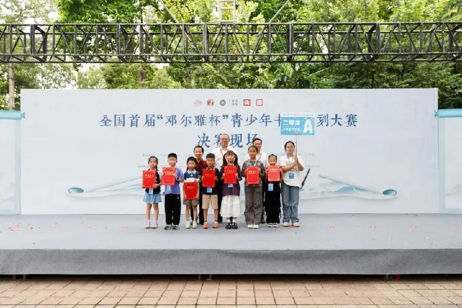决赛现场,经初评入围的各位青少年选手,按小学低年级组、小学高年级组和中学组分组落位,于限定时间内完成作品创作。现场氛围庄重有序,展现出青少年对传统书画篆刻艺术的专注与传承。评审环节采用现场打分制,既考量选手对传统书法篆刻技艺的掌握程度,也关注作品中蕴含的青少年视角与时代气息,确保评审结果的权威性与专业性。领导嘉宾分别为一、二、三等奖选手颁发了荣誉证书,对青少年选手的艺术成果予以充分肯定与鼓励。