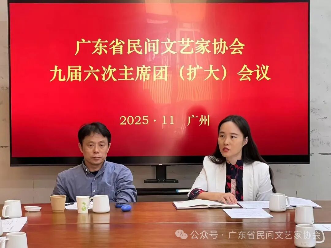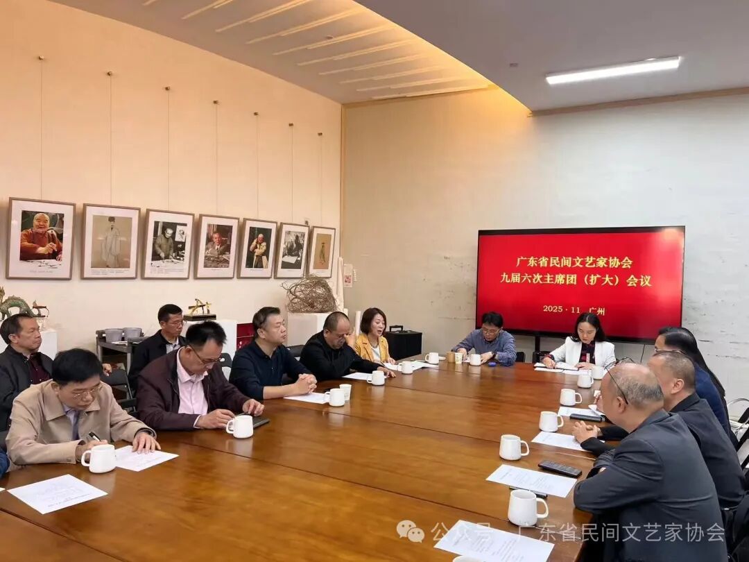 11月25日上午,广东省民间文艺家协会召开九届六次主席团(扩大)会议,传达学习贯彻党的二十届四中全会精神和习近平总书记视察广东、出席第十五届全国运动会开幕式重要讲话重要指示精神,研究学习宣传和贯彻落实举措。省文联副主席、省民协主席刘晓春出席会议并讲话。省民协主席团、监事、部分地市民协负责人和协会驻会同志参加会议。省民协秘书长黄舒媞主持会议。