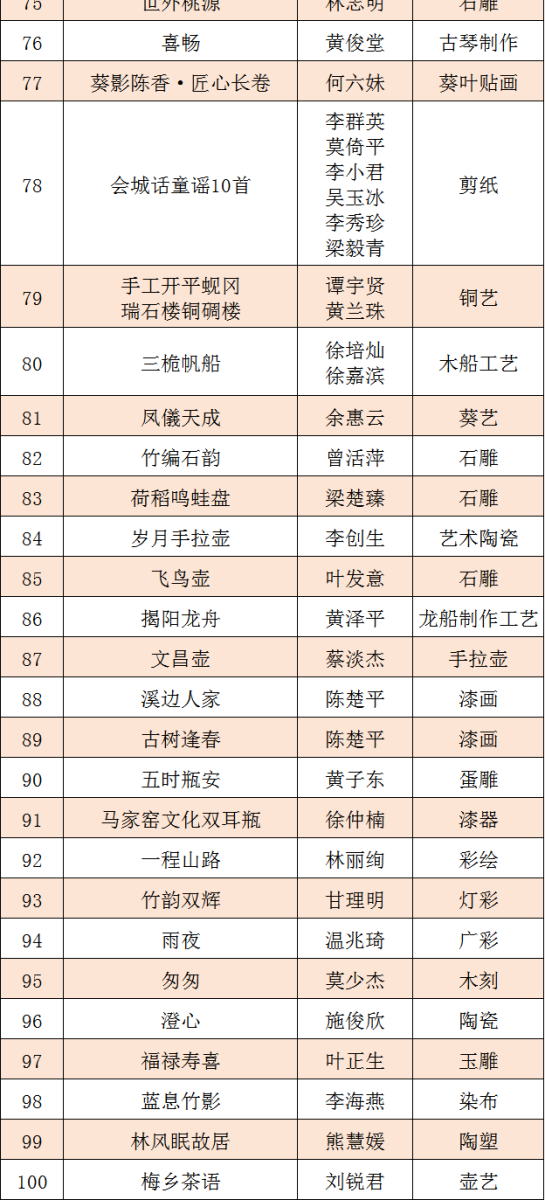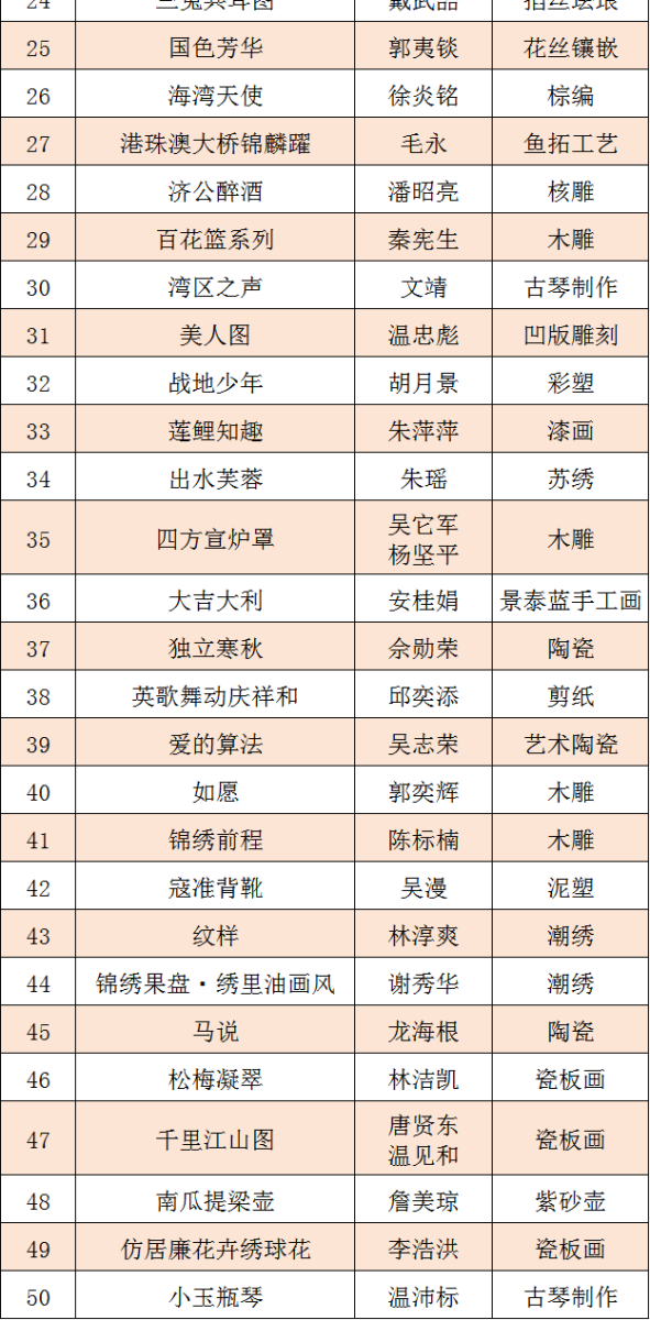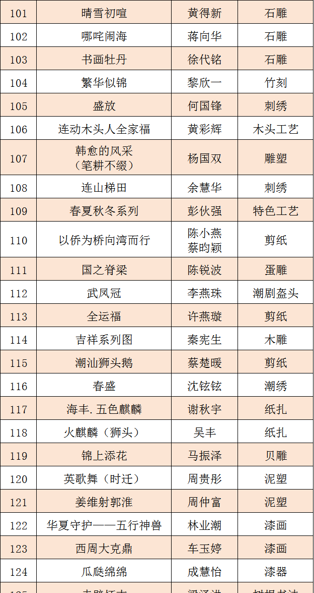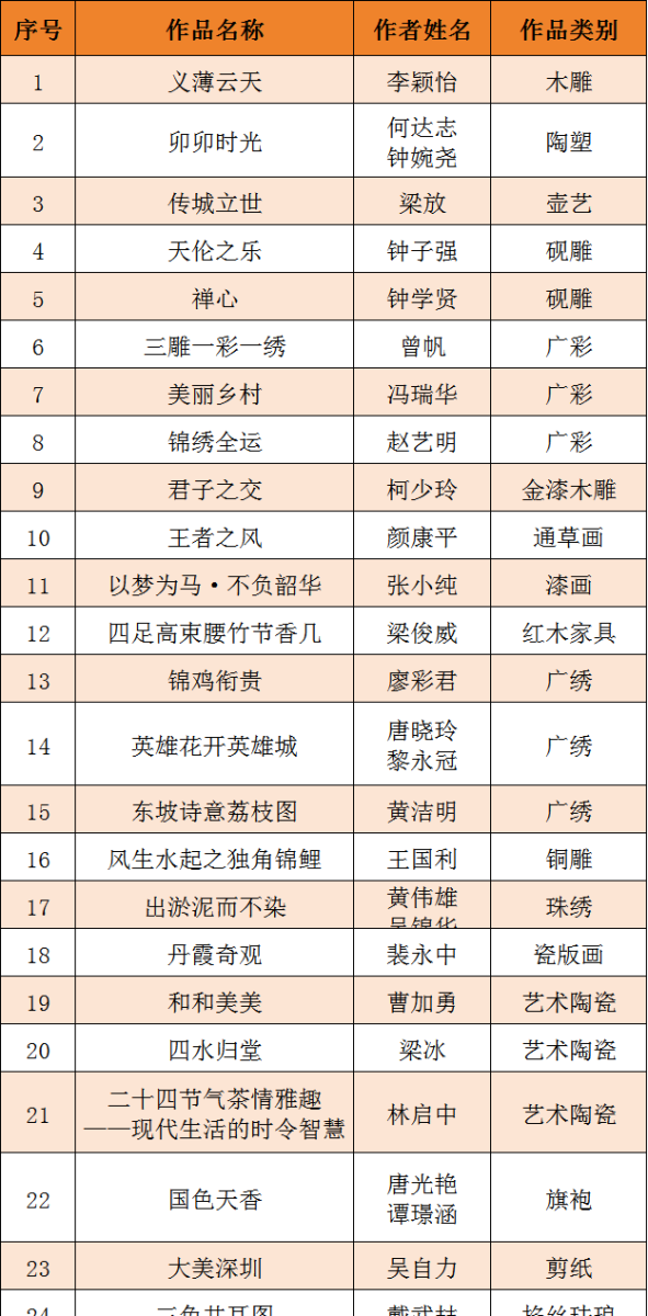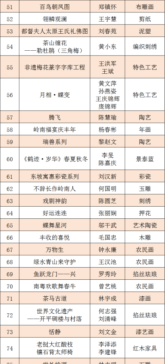 第十五届广东省民间工艺精品展参评作品初评结果