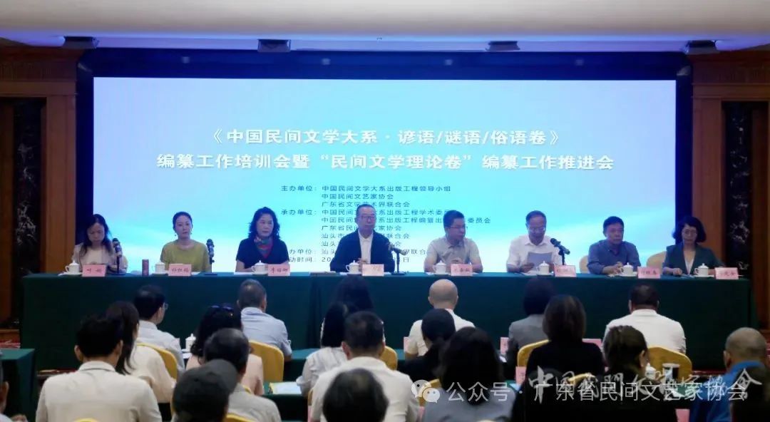7月27日至31日,《中国民间文学大系·谚语/谜语/俗语卷》编纂工作培训会暨“民间文学理论卷”编纂工作推进会在汕头举办。中国文联副主席、中国民协主席,大系出版工程领导小组副组长、学术委员会常务副主任、编纂出版工作委员会主任潘鲁生,广东省文联党组书记、专职副主席王垂林,中国民协副主席李丽娜,中国民协分党组成员、副秘书长,大系出版工程学术委员会委员、编纂出版工作委员会副主任侯仰军,广东省文联党组成员、副主席朴红梅,广东省文联副主席、省民协主席、中山大学中国非物质文化遗产研究中心副主任、教授,大系出版工程编纂出版工作委员会“民间故事”专家组副组长刘晓春,中国文联出版社副总编辑、大系出版工程编纂出版工作委员会副主任邓友女,汕头市委常委、宣传部长叶娴等出席开班仪式。各省(区、市)民协负责人、大系出版工程学术委员会和编纂出版工作委员会专家代表、中国文联出版社编校团队代表以及来自全国各地已立项卷本主编、编委和媒体记者100余人参会。