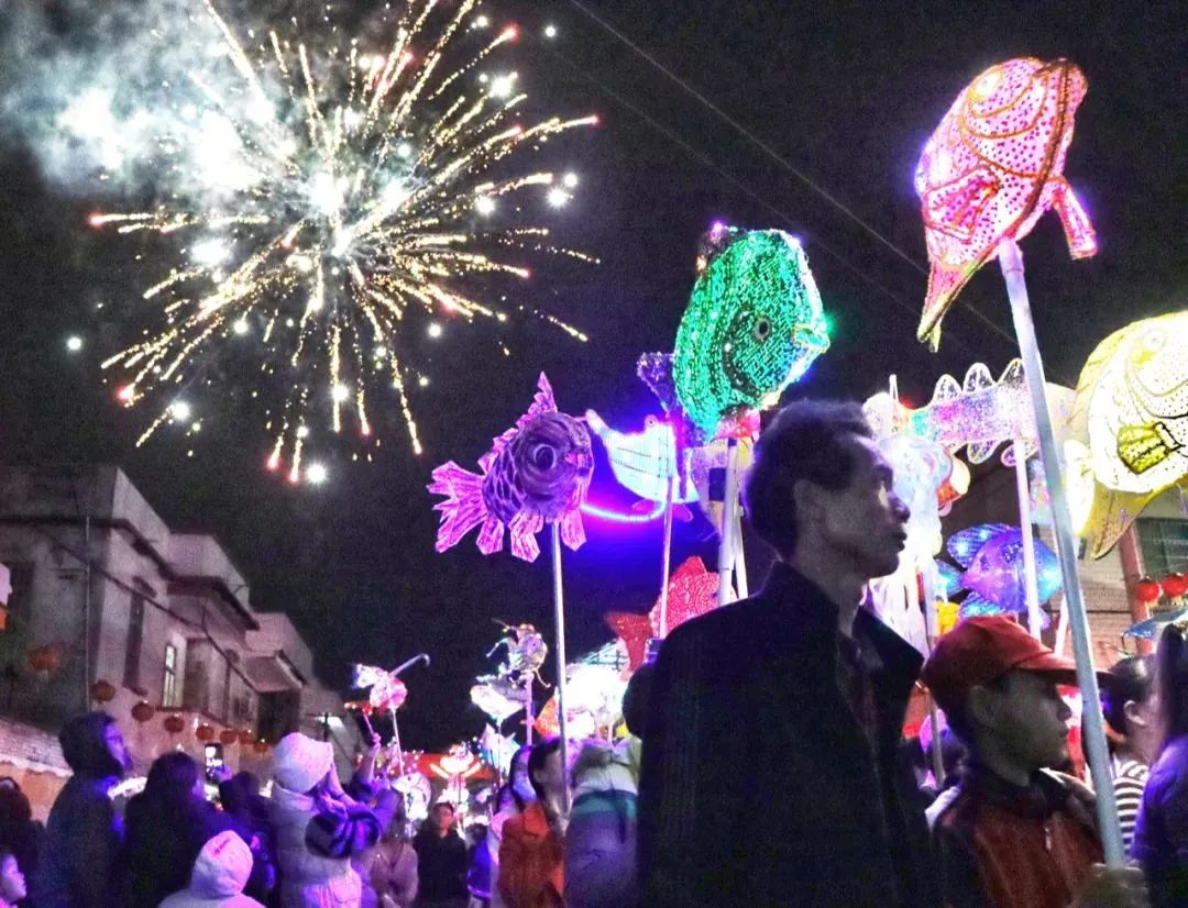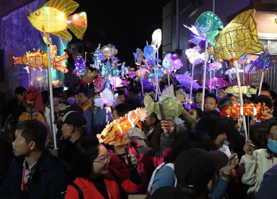 农历正月十四晚,湛江市遂溪县北坡镇举办“游鱼”活动,当地居民拿着形态各异的鱼灯巡游。“北坡游鱼”已有300多年的历