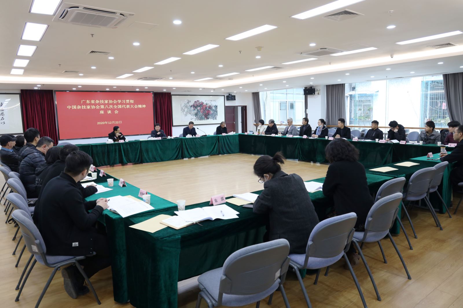 12月22日下午,广东省杂技家协会召开文艺家座谈会,传达学习贯彻中国杂技家协会第八次全国代表大会精神。省文联党组副书记、专职副主席吴华钦出席会议并讲话。老杂技艺术家梁义、尹燕春,以及来自香港、澳门、广州、深圳、河源、东莞、佛山等地杂技院团负责人,杂技界中青年艺术家代表27人参加座谈会。省文联有关部门同志列席座谈会。