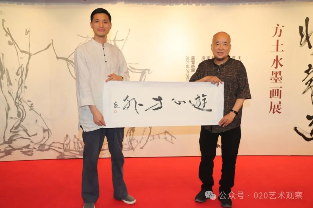 佛山市石景宜艺术馆常务副馆长许鸿学致辞时表示,近年来,石景宜艺术馆积极响应粤港澳大湾区文化建设战略部署,精心策划“艺术湾区”集体展览项目。该展览以珠三角九市及香港、澳门地区为核心,汇聚三地顶尖艺术人才,打造高水平艺术交流平台。展览凭借其卓越的艺术水准与广泛的社会影响力,已成功在外地开展两轮交流展示,成为大湾区文化交流的重要品牌。此次邀请方土举办个人水墨画展,是艺术馆推动区域文化艺术繁荣发展的又一重要举措。通过与方土共同观展交流,许鸿学对方土的艺术创作有了深刻而独到的见解。他认为,本次展览作品既有首次公开展出、气势恢宏的大幅力作,以磅礴的构图与精湛的笔墨彰显宏大格局;亦有精致入微的写生小品,以小见大,于方寸之间尽显艺术风骨,且落款与画面相互映衬、浑然天成。人物画体现“虚实相生”之韵,立足现实生活,却不拘泥于具象描绘,将个人精神与艺术想象深度融合,形成鲜明独特的艺术风格。山水画展现“物我相成”之境,创作过程中,方土将个人心神与自然山水相融合,以笔墨勾勒天地万象,展现出别具一格的艺术匠心与深厚造诣。