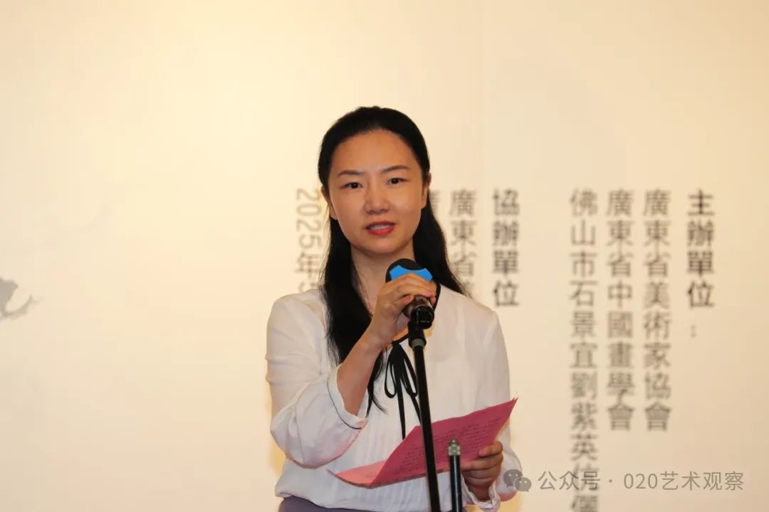 佛山市政协副主席张兵,广东省文联原二级巡视员、广东省美协原专职副主席兼秘书长王永,广东省中国画学会顾问、西泠印社社员郭莽园,湛江市委原常委黄家忠,广东画院副院长、广东省美协副主席、广东省中国画学会副会长郑阿湃,广州画院院长、广东省美协副主席、广东省中国画学会副会长宋陆京,广东省美协秘书长王瑾妤,广东省中国画学会副会长王大鹏,佛山市人大常委会委员、城建环资工委主任唐韶群,佛山市文广旅体局二级调研员张远征,佛山市文联党组成员、副主席夏法忠等领导嘉宾出席开幕式;佛山市石景宜艺术馆美术部罗丹主持开幕式。