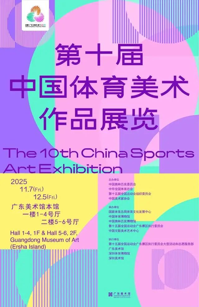 第十届中国体育美术作品展览由中国奥林匹克委员会、第十五届全国运动会组织委员会、中华全国体育总会、中国美术家协会主办,国家体育总局体育文化发展中心、中国体育博物馆、中国奥林匹克博物馆、第十五届全国运动会广东赛区执行委员会、中国文联美术艺术中心承办。“中华体育精神颂”十五运站中国体育文化展由中国奥林匹克委员会、中华全国体育总会主办,国家体育总局体育文化发展中心、中国体育博物馆、中国奥林匹克博物馆、广东省体育局承办。展览将持续至12月5日。