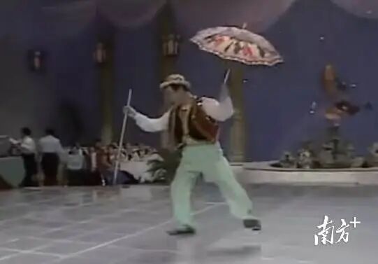 李春来在1984年春晚舞台表演《伞衣帽》。 受访者供图