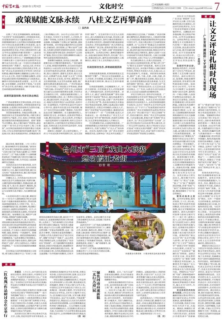 直面时代新论题。数智技术的迭代,不仅革新了文化生产的业态,更重塑了文艺传播与接受的范式。面对AI图文生成、短视频、网络直播带来的变革,评论者们以理性姿态展开剖析。陈劲松在《AI时代,写作何为?》中梳理了AI发展的脉络与优劣边界,最终指向一个核心判断:人类创作者唯有走出舒适区,重新定位自身角色,实现从机器辅助到人机协同的跨越,方能在技术浪潮中保持创作的主体性。杨喜超的《物质·人文·拟态:文旅微短剧的地域景观构建研究》关注文旅微短剧的叙事转向,认为文旅微短剧只有在尊重地方语境与文化脉络的前提下,才能把瞬时的情感冲击转化为持久的认同力量,成为推动文化传播与传承的重要载体。黄臻楷的《B站“弹幕礼仪”制度中的亚文化自律与审美追求问题》将目光投向弹幕这一评论新媒介,深入剖析“弹幕礼仪”背后的审美共识构建,指出这是引导亚文化走向网络文化共同体的有效路径。林参的《数字乡愁:直播间的乡音叙事与文化反思》则敏锐捕捉到乡土直播间里乡愁被符号化、表演化的问题,强调直播间应超越虚拟慰藉,催生现实的文化行动力。这些文章从日常生活切入,探究数字时代“虚拟”与“现实”交融、“线上”与“线下”渗透的深层命题,思索“传统”与“现代”在精神层面的对接,精准把握住了当下社会的痛点。