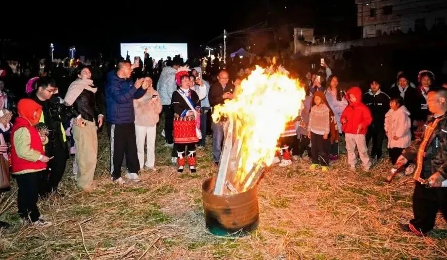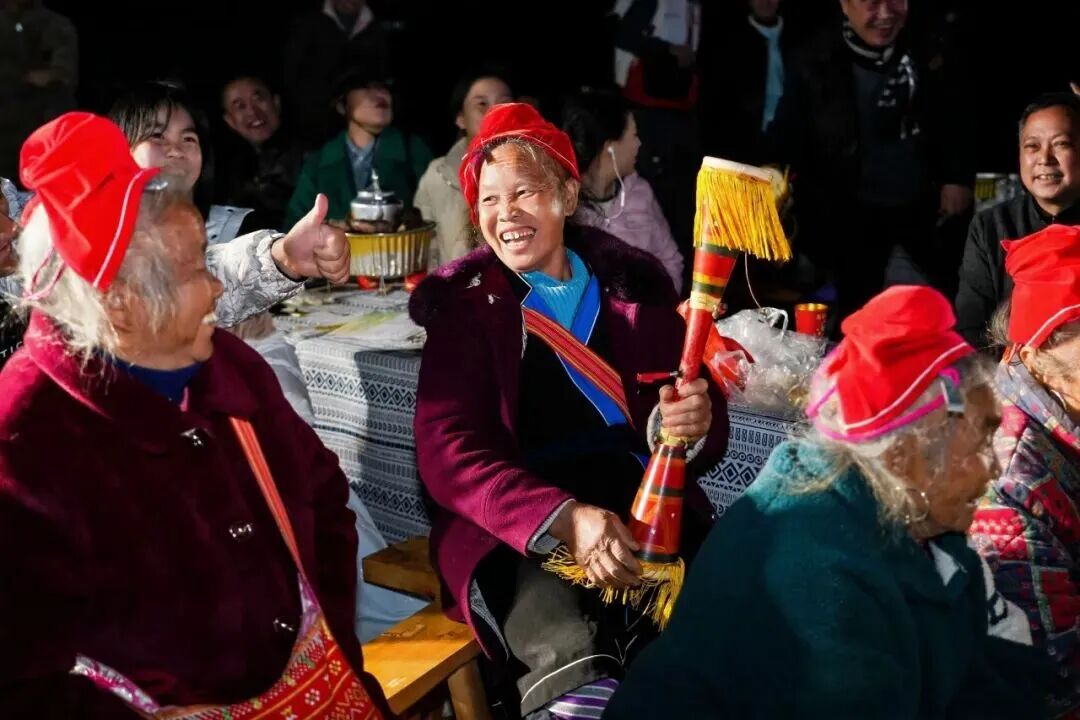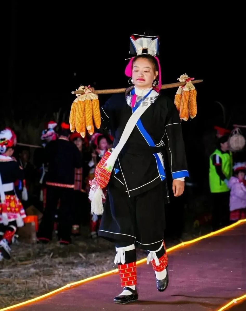 当晚核心亮点——国家级非遗瑶族婚俗T台秀,在稻田搭建的原生态舞台上惊艳亮相。这场由华南农业大学文艺志愿者编排、50名村民参演的“田野时尚秀”,特别邀请了全国人大代表、村党支部书记、村长、网格员等村干部带头参与。对他们许多人而言,这是人生中第一次踏上T台,以创新艺术形式诠释瑶族文化精髓。他们身着瑶绣传统服饰,手持农耕生产工具,将瑶族文化的古朴韵味与生活气息展现得淋漓尽致,彰显村民对本土文化的自信与自豪,创新演绎瑶族婚俗、服饰、歌舞等多项非遗。南瓜奖品、篝火晚会、粤剧、变脸、魔术表演等互动环节让百名观众沉浸式体验。村民赞叹“这是这辈子看过最精彩的文艺活动”,游客直呼“首次在田间地头看大秀,意义与体验感兼具”。