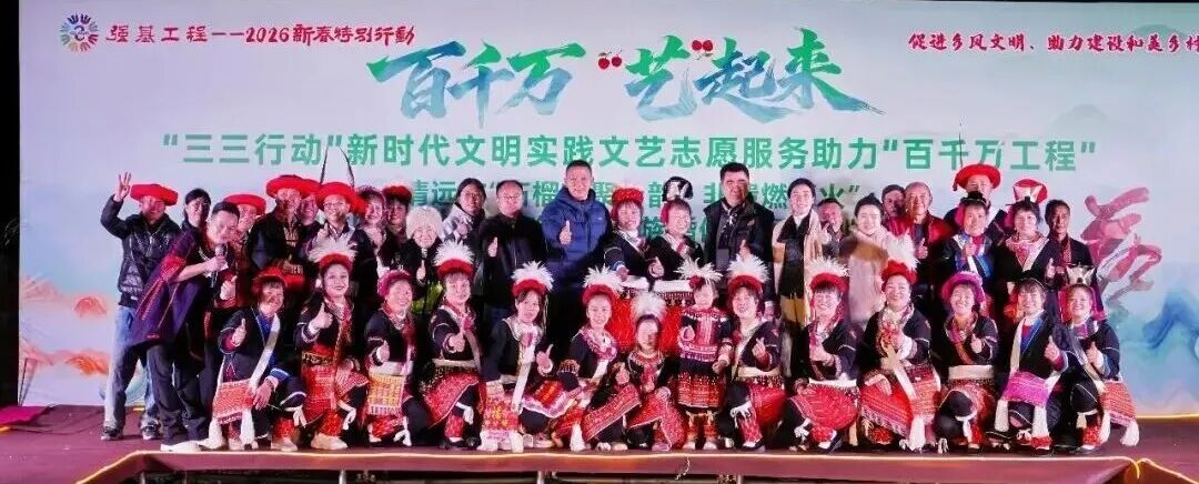 1月10日,一场别开生面的强基工程2026新春特别行动——“三三行动”新时代文明实践文艺志愿服务系列活动在清远连南瑶族自治县大坪镇牛路水村举行。活动以“稻田T台秀+非遗展+篝火晚会”的创新形式,将高端时尚搬进田间地头,活动在广东省首个村级文联所在地——牛路水村,揭牌成立了全省首个村级文艺志愿者协会,为“百千万工程”注入强劲的文艺动能。