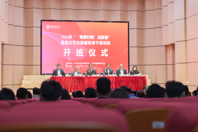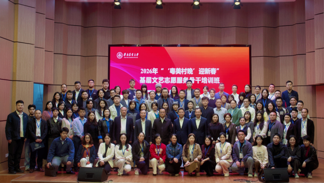 12月5日至12月6日,由省委社会工作部指导,广东省文学艺术界联合会和广东省志愿服务联合会共同主办,华南农业大学承办的2026年“‘粤美村晚’迎新春”基层文艺志愿服务骨干培训班在华南农业大学举行。来自全省各地市文联、文艺志愿者协会及各县(区)的近90名基层文艺工作者、志愿服务骨干齐聚一堂,共谋文艺志愿服务助力“百千万”工程新篇章。