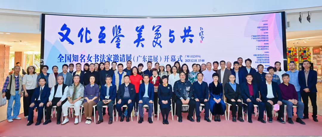 2025年12月18日下午,“文化互鉴 美美与共——全国知名女书法家邀请展”广东巡展在广州人民艺术中心隆重开幕。此次展览由中国书法家协会、中国美术馆指导,广东省文学艺术界联合会、广州市文学艺术界联合会、广东省书法家协会主办,广州市书法家协会、广州人民艺术中心承办,汇聚全国百位女性书家精品力作,并特别展出广东本土女书法家作品,为岭南文化盛宴增添亮丽色彩。
