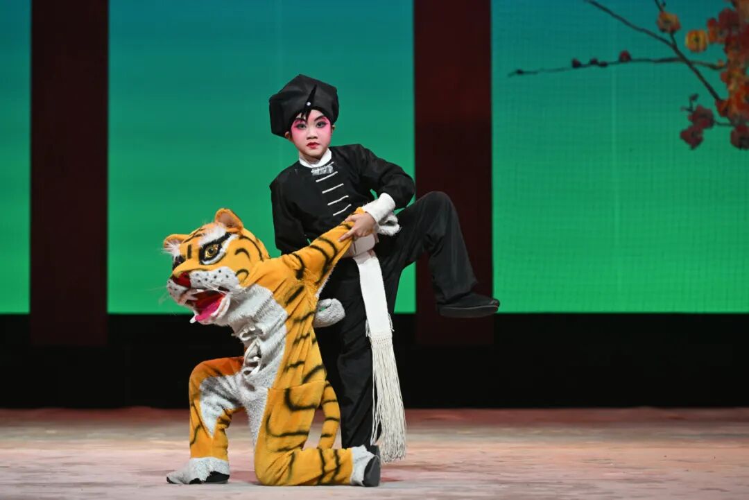 潮剧《死谏》、广东汉剧《秦香莲·杀庙》、雷剧《林冲夜奔》、京剧《击鼓骂曹》、粤剧《武松打虎》等剧目各具特色,小演员们以精湛的演技、饱满的情感,诠释了不同剧种的独特魅力。