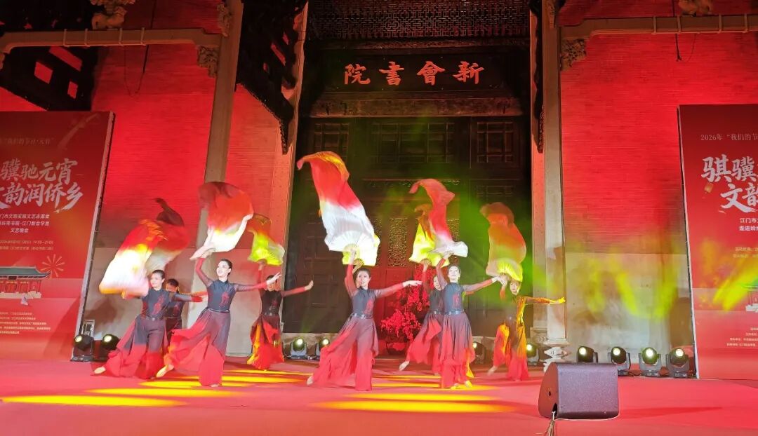 3月1日晚,由江门市委宣传部、广东省文艺志愿者协会指导,江门市文明办、江门市文联主办的2026年“我们的节日·元宵”江门市文明实践文艺志愿者走进岭南书院·江门新会学宫文艺晚会在新会书院温情上演,为市民献上一场穿越千年文脉、融合传统与现代的文艺盛宴。