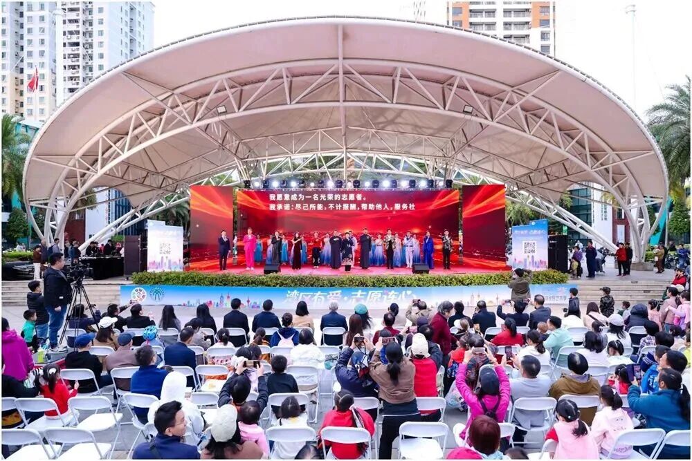 在福田区益田村中心广场的“湾区有爱・志愿连心”巡演,则以艺术化形式传递主流价值,舞蹈《帼面凤翎》的传统意蕴与歌曲《领航》的时代精神相得益彰,实现了美育与思想引领的有机统一。