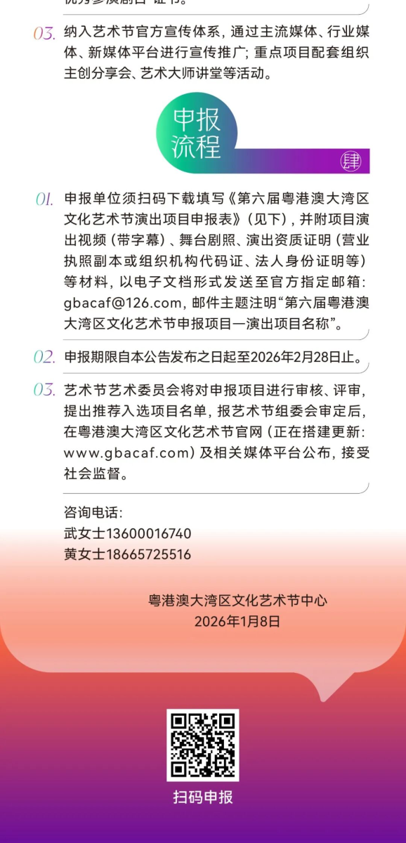 1月8日,第六届粤港澳大湾区文化艺术节正式启动演出项目全球征集,一场汇聚多元艺术的湾区文艺盛宴即将启幕。
