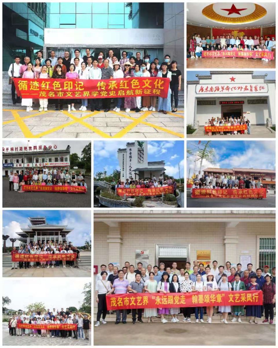 采风队伍先后来到化州革命教育基地、广东南路革命化州教育基地、革命老区山阁烧酒村、高州革命历史博物馆与高州烈士陵园、信宜怀乡起义旧址追寻红色记忆,缅怀峥嵘历史,学习革命先烈不怕牺牲、披荆斩棘、前赴后继的精神。同时,采风人员深入茂名石化公司炼油厂,新农村建设示范村南盛街道平垌村委会新湖艳村、高州根子元坝村,中国荔枝博览馆感受茂名经济社会发展的巨大成就、人民群众的创造精神以及广大群众日益美好的生活。